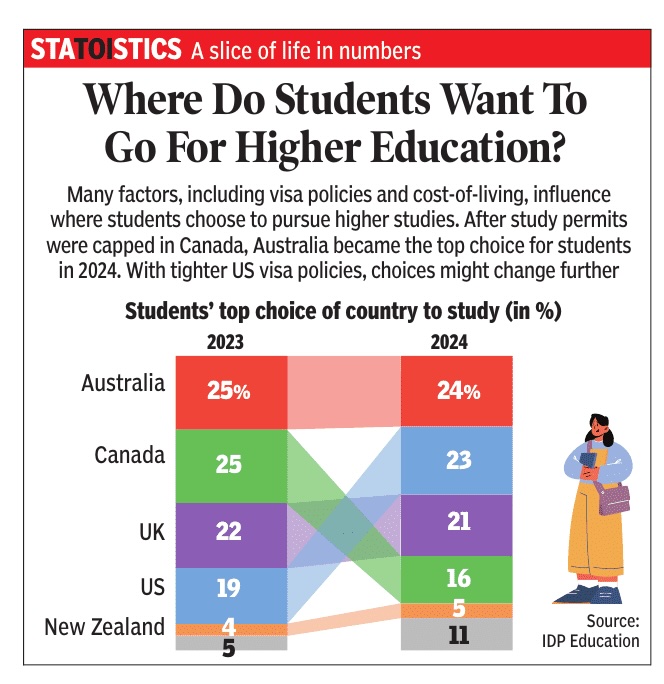 “Canada is a top destination for high-quality, globally recognised education in an open, tolerant, safe and multicultural environment,” Amanda Strohan, deputy high commissioner of Canada to India told TOI. She added India is now the top source country for foreign students studying in Canada.