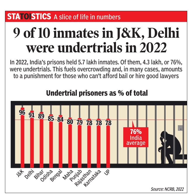 This problem is not India centric. Almost all countries show similar patterns. For example, in 2017, US jails had 33% Blacks, who were only 12% of the population. Similarly, Hispanics made up 23% of the total inmate population, while accounting for 16% of the adult population.