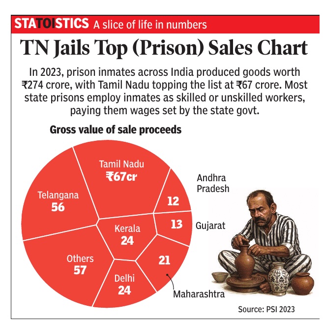 Meanwhile, in Yamunanagar District Jail, 200km from Gurgaon, two dozen inmates produce ceramic floor tiles for a local firm. “They work six to eight hours a day for Rs 40,“ says IG Jagjeet Singh, adding that Ambala Central Jail produces steel furniture for another company .