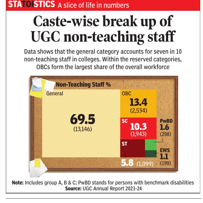 The caste composition of the non teaching staff of the University Grants Commission, presumably as in 2025