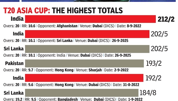 | + | [[File: The highest totals in Asia Cup cricket, as of 2025 Sept 27.jpg|The highest totals in Asia Cup cricket, as of 2025 Sept 27 <br/> From: [https://epaper.indiatimes.com/article-share?article=28_09_2025_015_005_cap_TOI Ehtesham.Hasan, Sep 28, 2025: ''The Times of India'']|frame|500px]] | ||