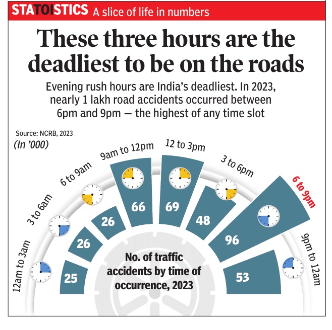 | + | [[File: The most Accident-prone hours of the day in India, 2023.jpg|The most Accident-prone hours of the day in India, 2023 <br/> From: [https://epaper.indiatimes.com/article-share?article=24_10_2025_008_012_cap_TOI Oct 24, 2025: ''The Times of India'']|frame|500px]] | ||