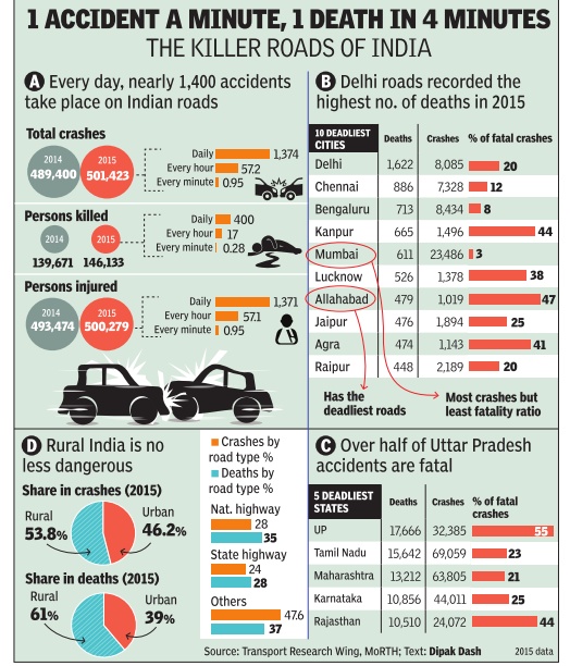 Arvind Chauhan, `4.96 lakh traffic accidents, 1.8L deaths in 2015', Jan 8, 2017: The Times of India