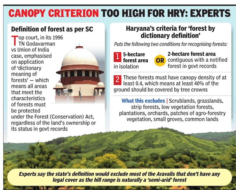 Haryana's definition, formed nearly six decades after the state came into existence, is narrower than the principle defined by Supreme Court in its landmark ruling in the 1996 TN Godavarman vs Union of India case. | ||
