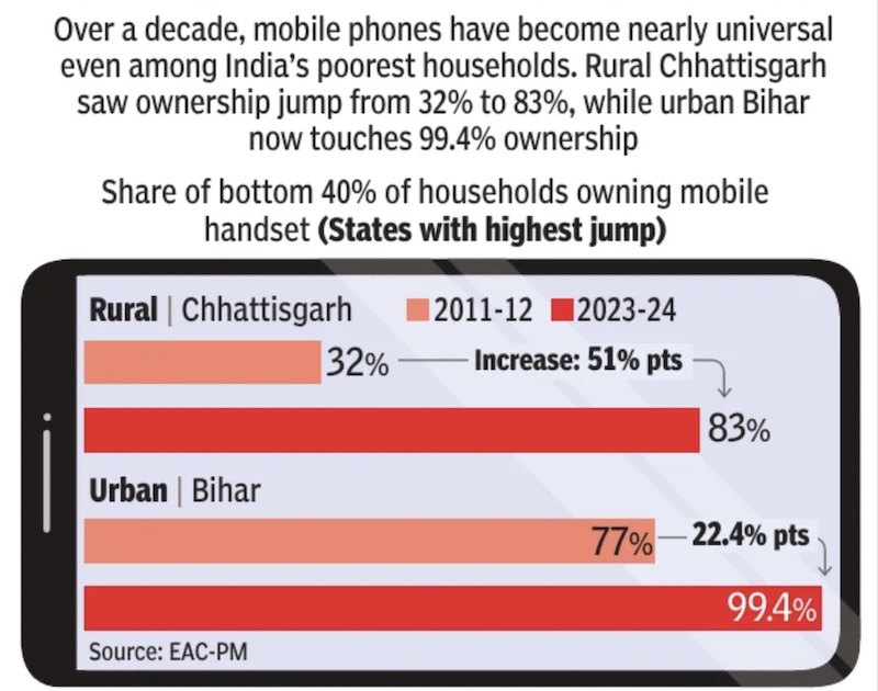 India: the “Bottom 40%” households and the ownership of Cell-/ mobile- phones, 2011-2024